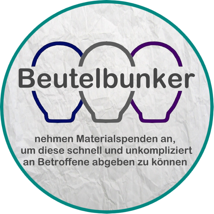 Wer Material spenden möchte kann es bei einem unserer Beutelbunker tun. Sie werden dann die Sachen an Betroffene weitergeben. Die genauen Adressen dürfen aus Datenschutzgründen nicht veröffentlicht werden, aber die Standorte sind in einer google-Karte verzeichnet. Und so funktioniert es:
